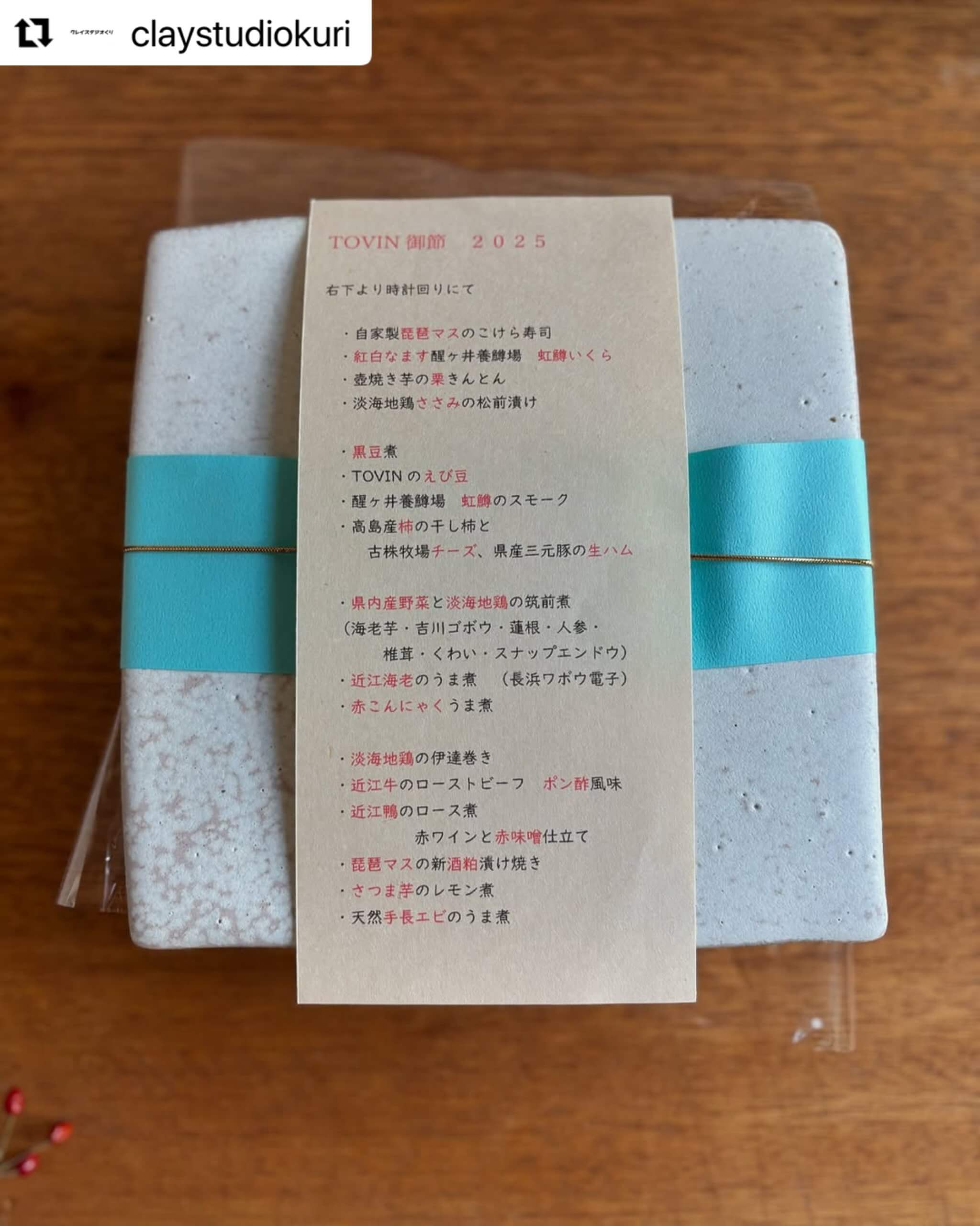2025.01.01 今年もよろしくお願いします。 あけましておめでとうございます。 本年もどうぞよろしくお願いいたします。 大晦日にヒノブルーイングさんにビールを飲みに行ったらすごい熱気で振る舞われた焼酎やワインを飲み、勢いづいて帰宅してからも日本酒を飲み過ぎてベロベロでした。除夜の鐘ついたことも忘れてる情けない年越しでした。ストーブつけたことを忘れてたけど、妹がちゃんと消してくれてました。出来る子。イヤカフ無くしたと騒いでたらしいけど、朝見たらちゃんといつもの場所に片付けてあった。😇 午前中は横になって過ごし、ようやく食欲が出てきたのでtovinさんのお節をいただきました。最高。 今年のお雑煮は、母の実家の味にしてもらいました。シャケ(当時は新巻鮭使ってたらしい)大根人参山芋三つ葉。 元気が出てきたので妹夫婦と叔母と綿向神社にお詣りに行きました。 良き一年になりますように。 明日から店の営業です。 ぜひお立ち寄りください☺︎ Tweet Share RSS 2024年ありがとうございました。 獅子舞。