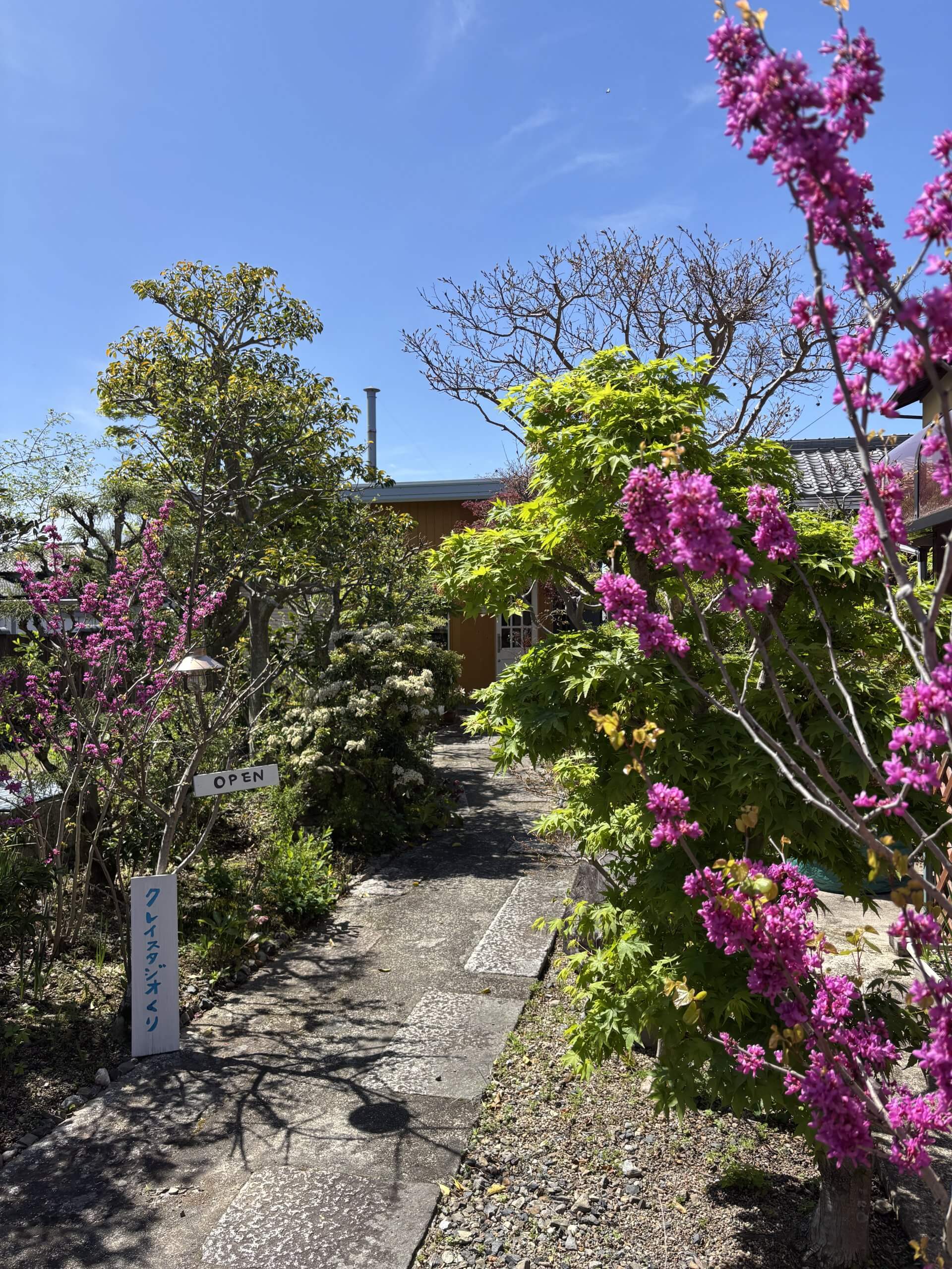 2026.04.13 庭の様子。 庭の緑がどんどん鮮やかになってきました。ハナズオウの濃いピンクとモミジの黄緑がかわいい。うちのシャクナゲは今年当たり年らしく、たわわに花を咲かせています。制作の合間に草むしりに勤しんでいます。 日野で話題の日野川ダムの浮島の八重桜はそろそろ開花ということです。シャクナゲ渓のシャクナゲもそろそろ咲くかな。ブルーメの丘のチューリップ畑も見頃のようです。 周りでは日野祭の話題が聞こえてきました。今年も曳山のお手伝いに行かせていただくので、5/3は大体の時間は店主不在、母に任せる予定です。 5月の営業予定、早めにお知らせします。 ぜひ春の日野町へいらしてください🌸 Tweet Share RSS 4月の営業予定、休みを追加しました...