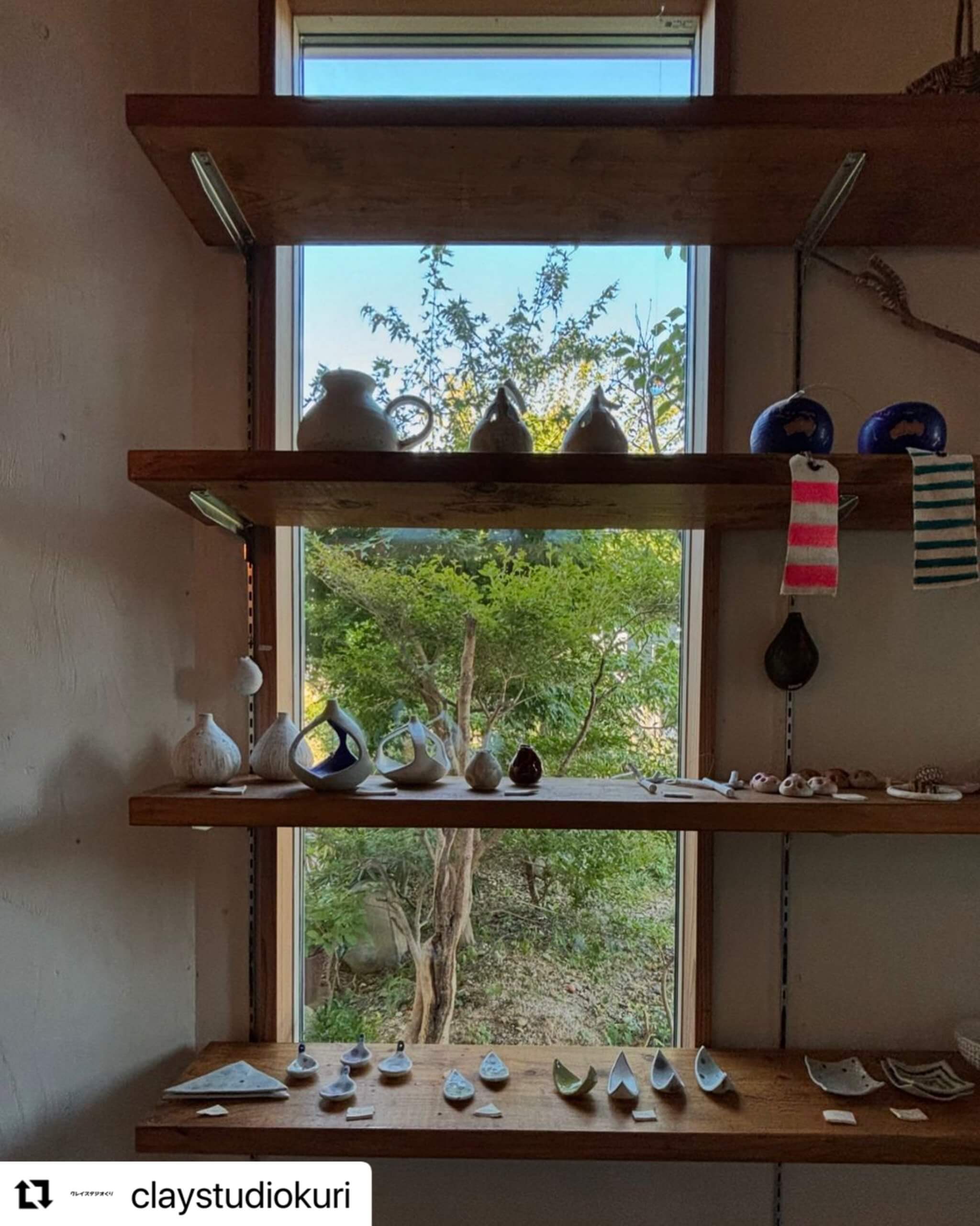 2024.08.12 開店準備進んでいます。 8月12日(月) 在庫の品を店内に並べました。 合間に親戚が2組来られて賑やかでした。写真3枚目。 太陽光が綺麗に映り込むなと思ってたら、レンズの上に貼ってたガラスのシール割れてた。 写真2枚目は6月10日のもの。 2ヶ月の変化に驚く。そしてとても感慨深いです。 ビビりで用意周到な私は、作業も大体前倒し。(そやのに約束の時間には大体遅刻する) 写真4枚目はエアコンの横の窓からのもの。 八月後半は、旅行と窯焚き。 あっという間に9月がきます。 地震や台風に落ち着かない日々ですが、みなさま良いお盆休みを☺︎ Tweet Share RSS 移転案内。 火振りまつり。