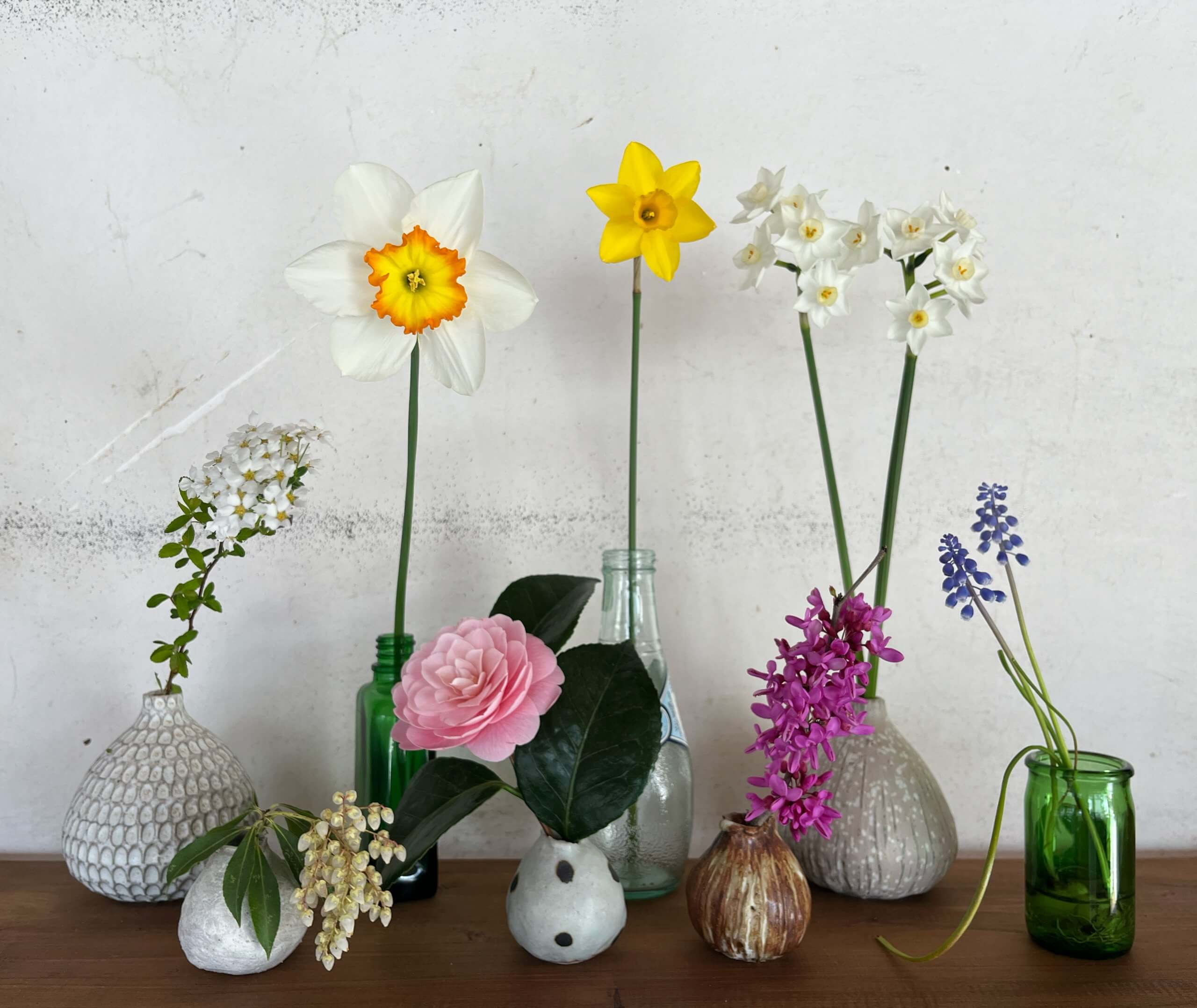 2023.04.01 4月1日(土)。 4月1日(土)営業日です。 庭の草花がみるみる咲き始めて、いろんなのを切ってきました。 並べたら家族写真みたいになった。 こういうお花が主人公の絵本読んだ記憶がある。みんなでバスに乗る花一家。 この前T君が教えてくれた、花粉症に効くフラクトオリゴ糖というのを数日前から摂取していますが、一向に効いている気配がありません🤧 今日もマスクつけて店番。 17時までお待ちしています! Tweet Share RSS ご来場ありがとうございました。 看板修理中です。