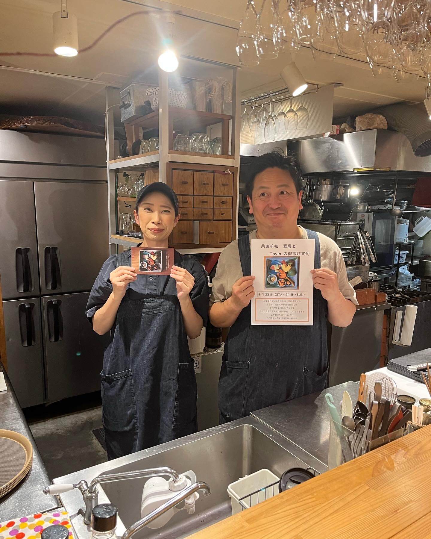 2023.09.24 Tovinさんでの器展ありがとうございました。 浜大津Tovinさんで開催しました二日間だけの展示会「栗田千弦 器展と Tovin の御節受注会」おかげさまで盛況に終了いたしました。 ご来店くださった皆さま、本当にありがとうございました。 Tovinさんは、貴生川で「とりや」さんという名前でお店をされていたころからのお付き合いです。とりやさんには友人と何度かお伺いして、ワイン会に参加したことも。 たくさん器を買ってくださり、何度もお会いしているのにゆっくり話すことがなかなか無くて。今回在廊しながら色々な話を聞かせていただきました。父が店に立っていたときのことも話してくださって嬉しかった。 この場所に移転されて、いつか作品展をしたかったそうで、記念すべき初めての展示を私に任せてくださったこと、本当に幸せです。 旧大津公会堂は登録有形文化財で、とても素敵な建物です。こんな場所で展示会ができるなんて、嬉しすぎる。 大西さん、ミカさん、搬入日から三日間、本当にお世話になりました。 ありがとうございました! @shigatovin @ootsutovin 土曜日の夜は昼間の部が終わってから東横インにチェックインして、仲良いお客さんと友人たちと楽しい夜。大好きな人たちに囲まれて、美味しいお料理とお酒、そして私の器がたくさん使われていて、夢のような時間でした。ご一緒してくださった皆さま、ありがとうございました。 二日間とも、昼間は接客があるのでお酒は我慢していたのですが、ランチに来られた皆さんがお料理とお酒を楽しまれている風景は、大らかな空気が流れていてとても良いものでした。 賄いのお昼ごはんをいただくときには、ほろ酔いのお客様とお喋りしたり。 二日間と短い期間でしたが、本当に充実していて楽しい展示でした。 御節のご注文も、予定数の半分ほどいただきました。 大晦日のお渡しに間に合うように、11月半ばまでは引き続きご予約を承ります。ご希望の方はTovinさんまでご連絡くださいませ。お重の見本Tovinさんに置いています。 展示を終えて帰路につくと、二日前の搬入日はまだ暑くて袖無し着てたのに、すっかり涼しくて、キンモクセイの香りがしたような。 九月も最終週。来週は10月やん。 次は10/13〜16石山寺で「いとうつくしきもの展」に参加します。 もう品物は焼けているので、その後の予定に向けてまた制作の日々です。 こんなに季節の変わり目がくっきりしてるの、びっくりする。 そういえばミカさんの発案で初めてのライブ配信。急に決まってしどろもどろの私の映像がリールに残っているのですが、私は恥ずかしすぎて見返していません。 私が己の何かを自身でライブ配信することはまずないと思いますが、良い経験でした。ご覧くださった皆さまありがとうございました。 Tweet Share RSS ライブ配信をしました。 9月30日(土)12時頃開店、10...